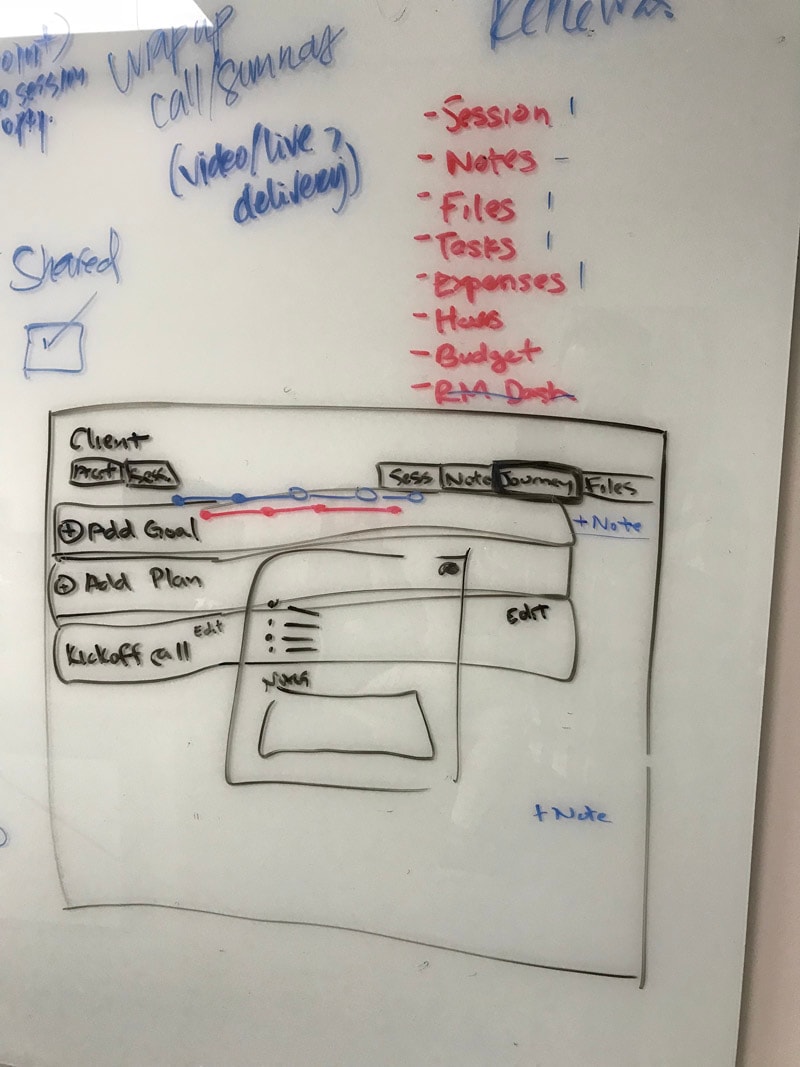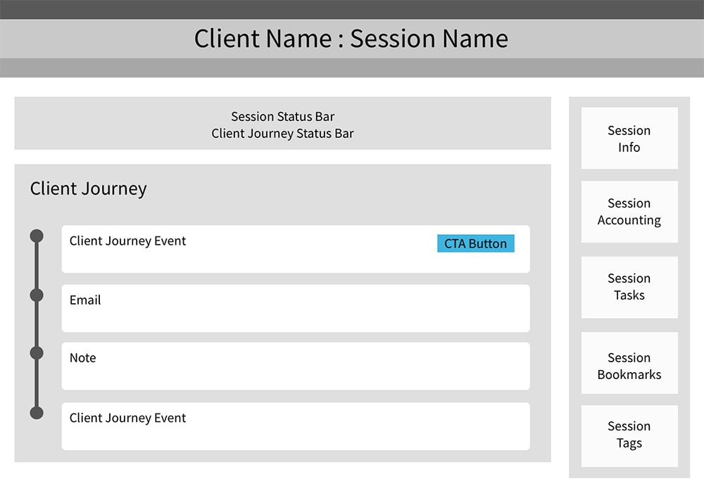 Very early wireframe concept of a session & client journey