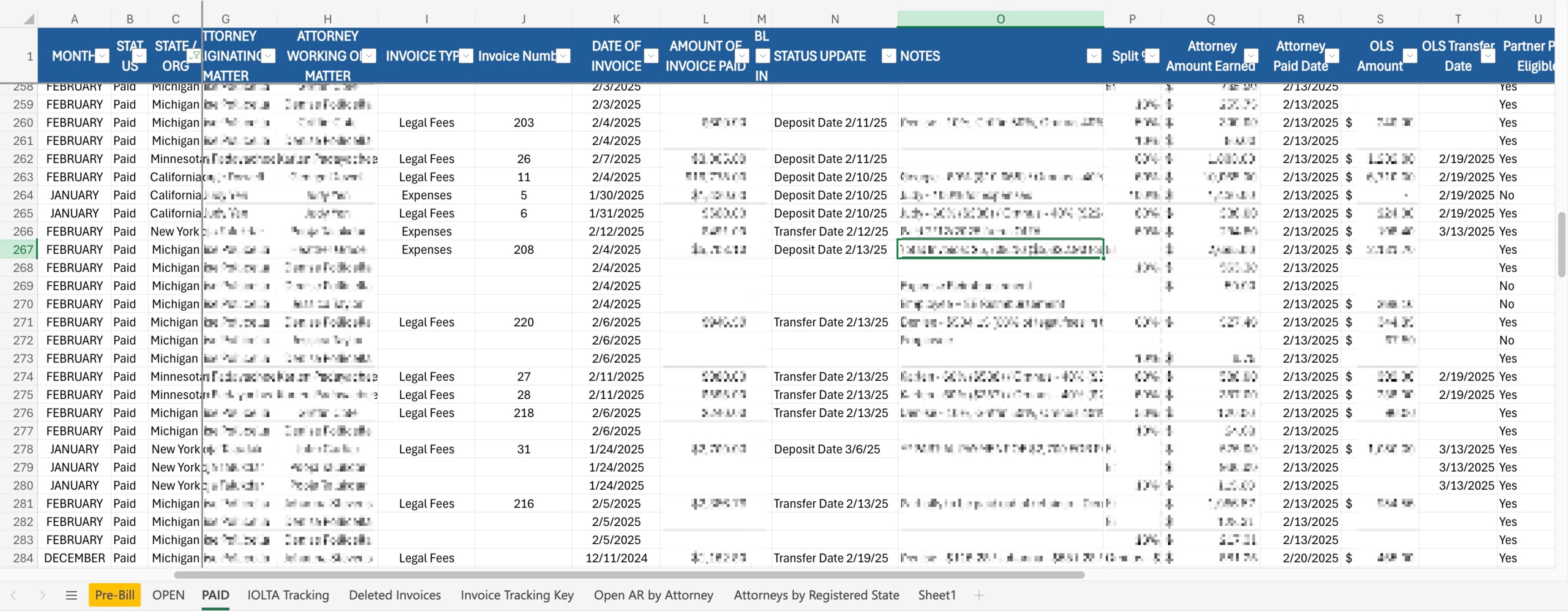 Spreadsheet for maintaining 50 Filevine accounts.