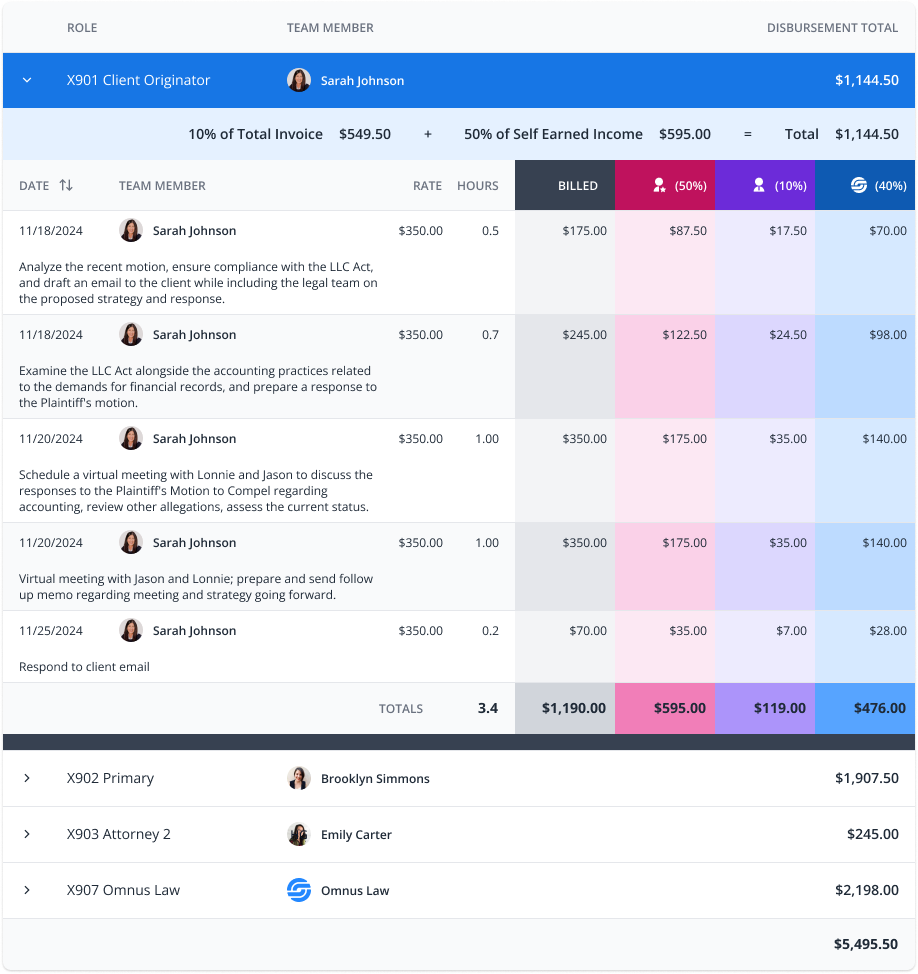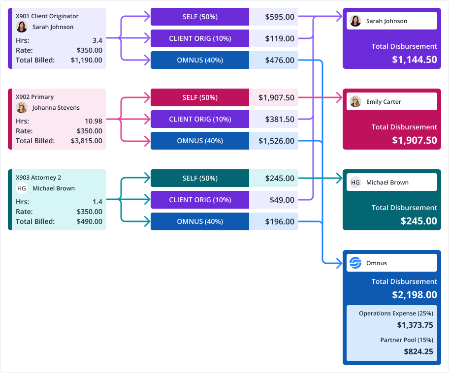 Omnus Law’s Finance Team managed payouts for hundreds of attorneys using 50 separate Filevine accounts—exporting CSVs and wrangling spreadsheets for hours daily. I led the design of a unified Invoice & Partner Pool Dashboard that automated these processes and centralized data into a single, accurate ERP-style interface.
